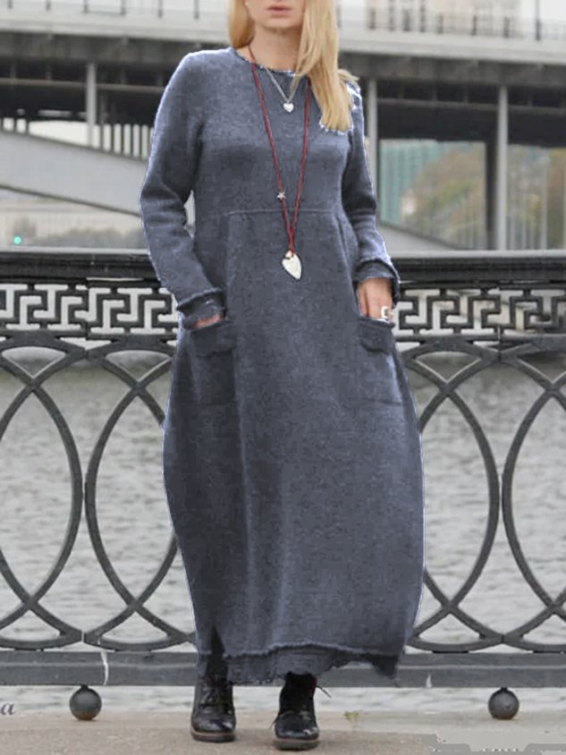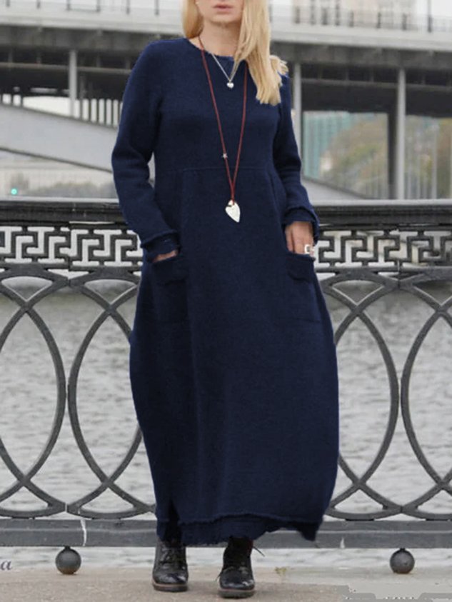 Casual Cotton Long Sleeve Causal Sweater Knitting Dress