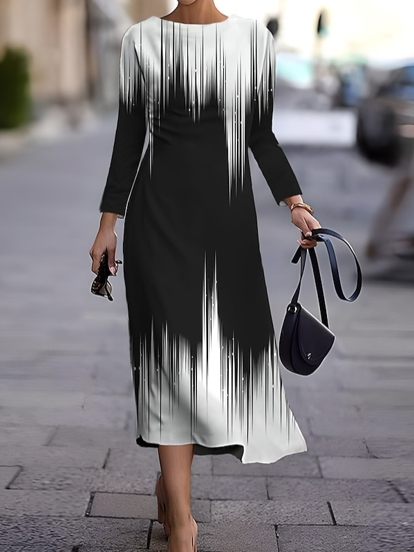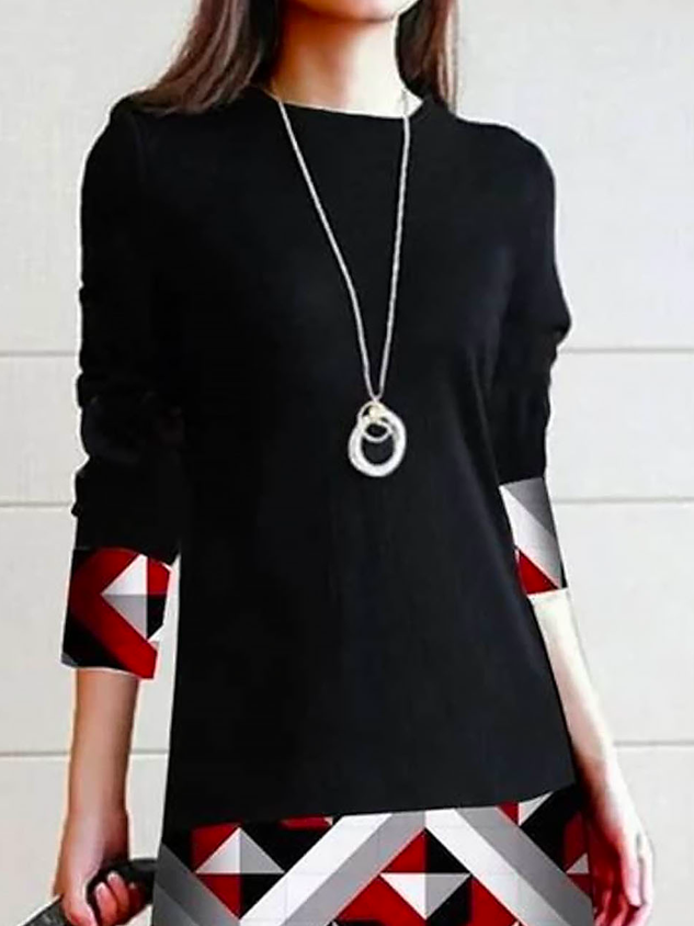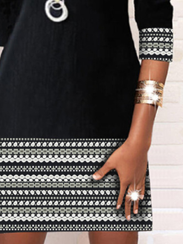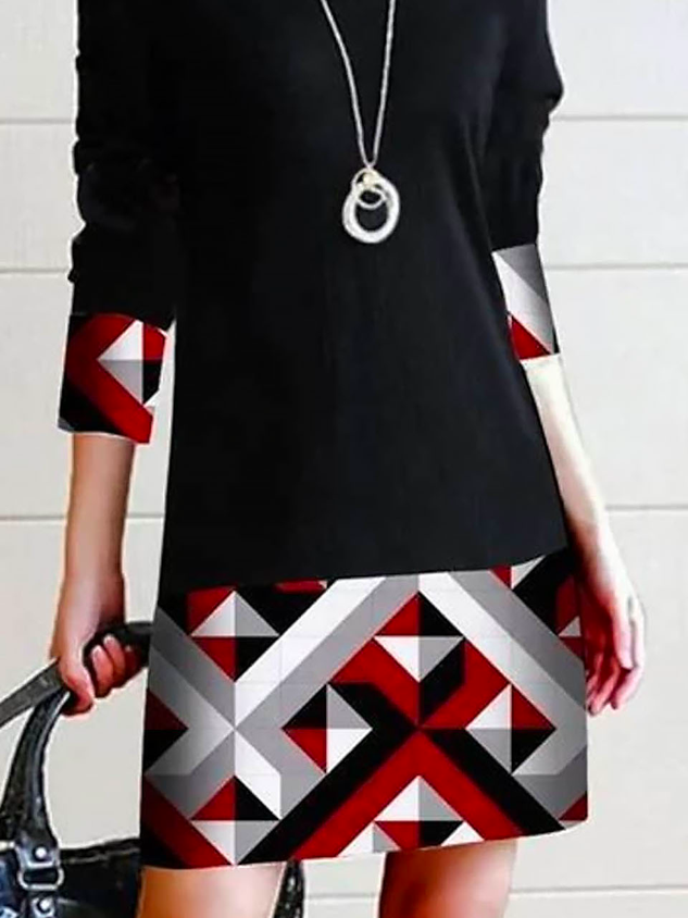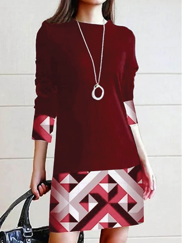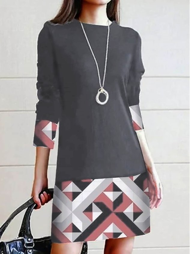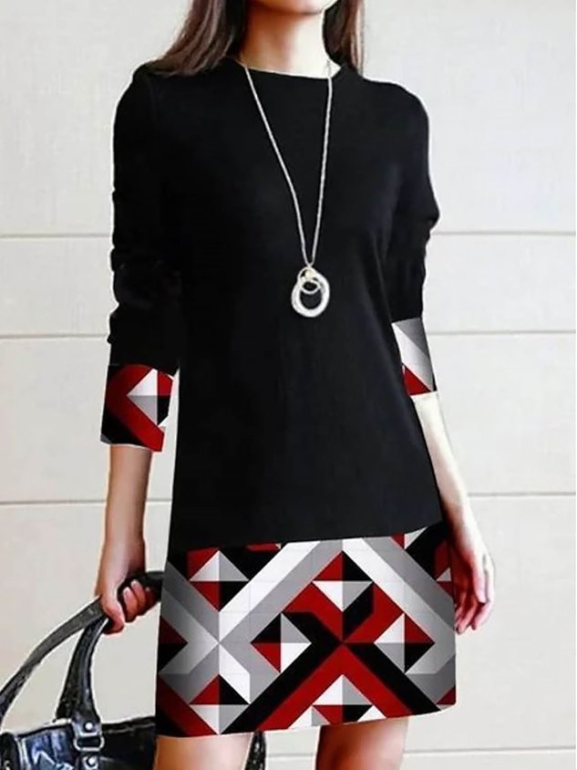 Crew Neck Geometric Casual Dress
