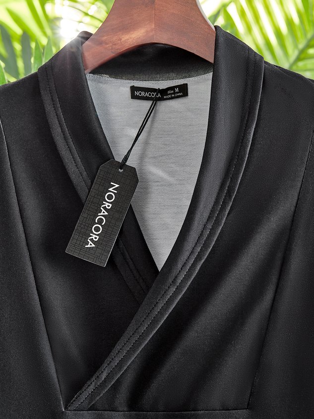 Women Notched Casual Jersey V Neck Sleeveless Loose Short Dress