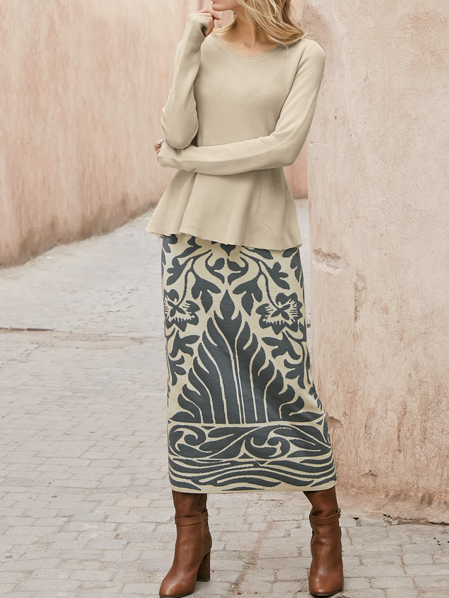 Boho Ethnic H-Line Natural Maxi Skirt