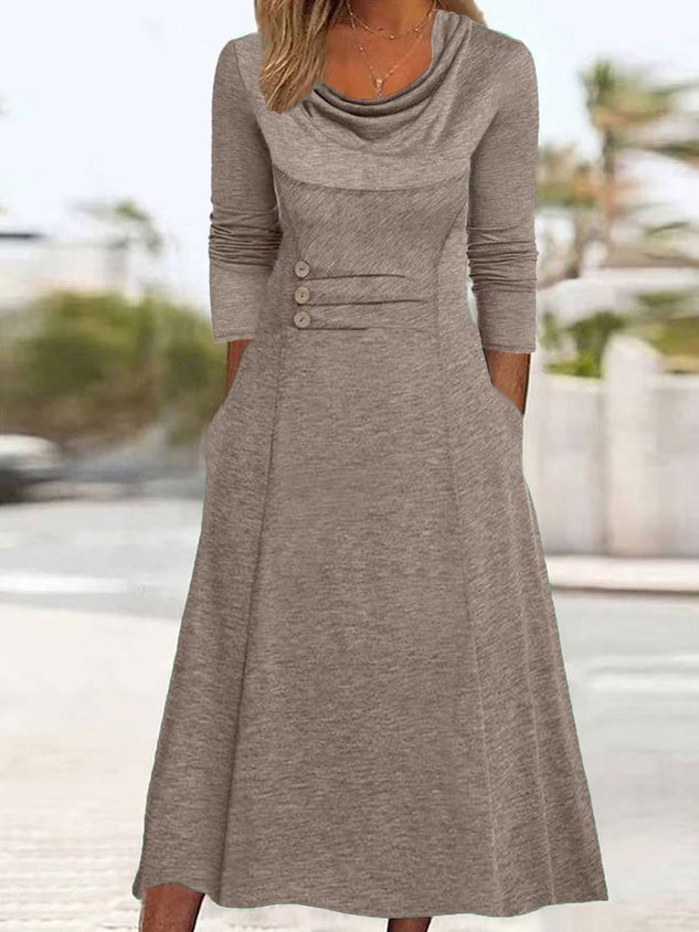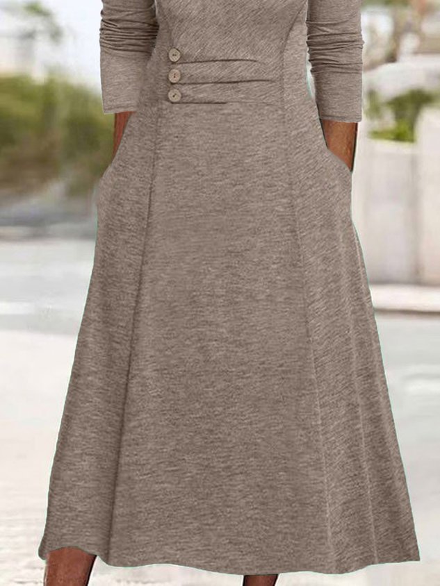Women Plain Others Long Sleeve Comfy Casual Buckle Maxi Dress