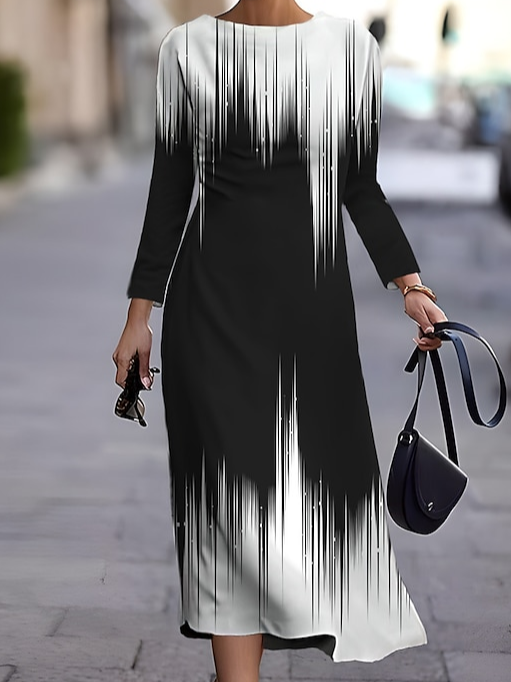 Women Color Block Crew Neck Long Sleeve Comfy Casual Maxi Dress