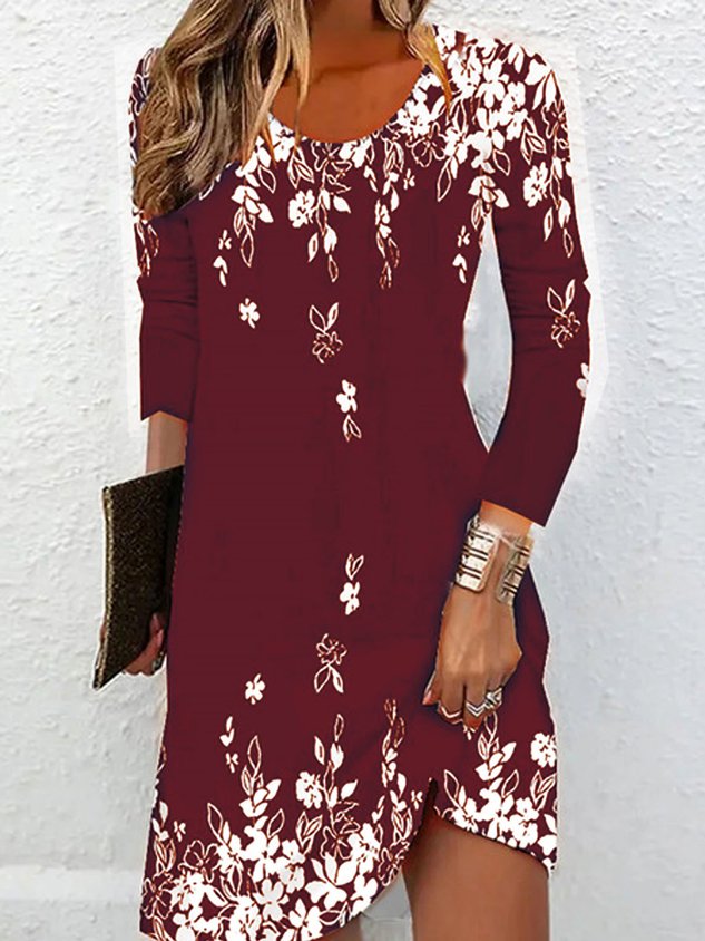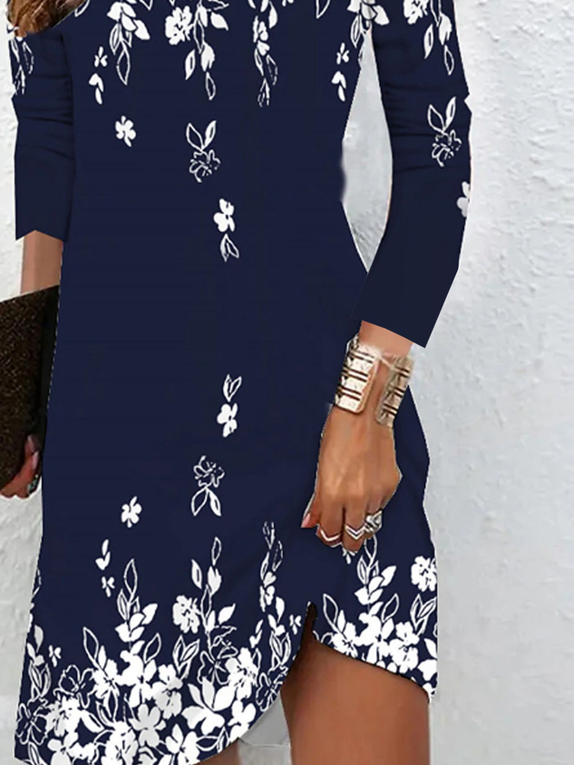 Jersey Casual Loose Buckle Floral Dress