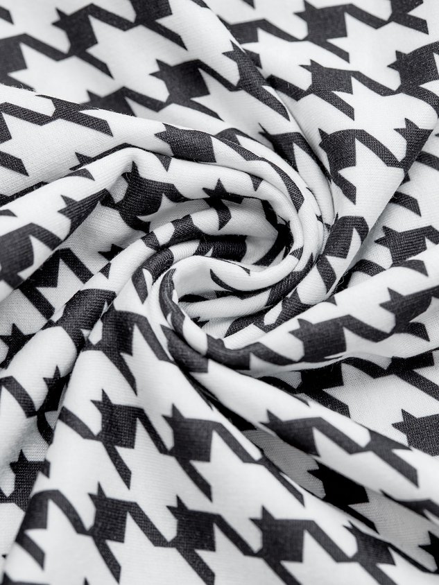 V Neck Houndstooth Long SleeveCasual Dress
