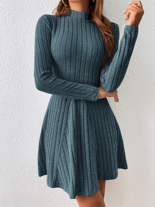 Women Plain Stand Collar Long Sleeve Comfy Casual Midi Sweater Dress