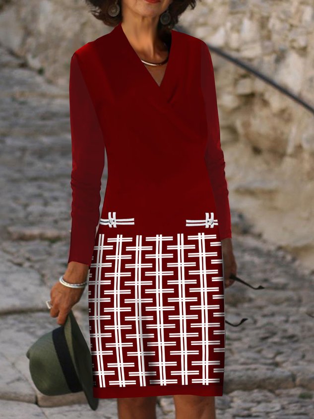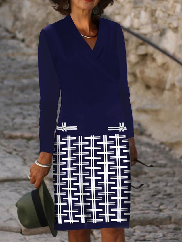 Casual Loose V Neck Geometric Dress